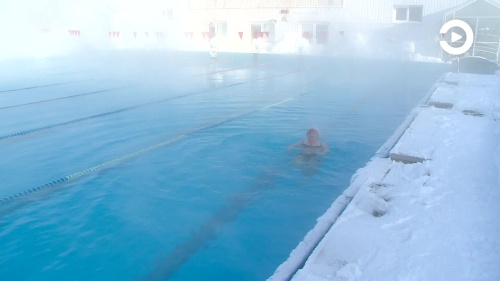 В морозную погоду пензенцы купаются в открытом бассейне в Ахунах
